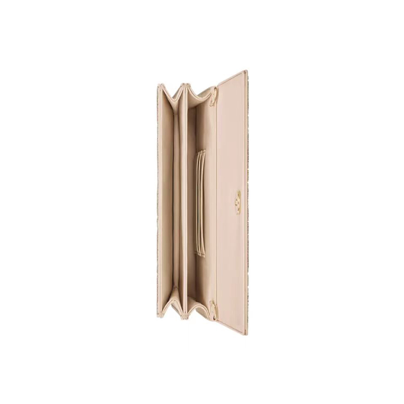 「Miss Dior (ミス ディオール)」ラインに新たに加わった、エレガントで機能的なデザインのミニバッグ。ブラックのコットンを使用し、同系色のマイクロパールで全面に手刺繍を施して「カナージュ」モチーフを描きました。フロントにD.I.O.R.チャームを添えたフラップや、毎日の必需品をすべて収納できるコンパートメントとカードスロットを配し、昼夜を問わず活躍する機能的なアクセサリーに仕上げています。トップハンドルのほか、レジンパールを添えた取り外しが可能なチェーンも付属。ハンドバッグとしてはもちろん、クロスボディバッグとしてもお使いいただけるモデルです。