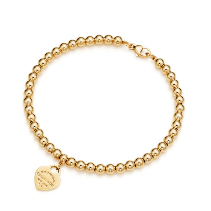 ティファニーらしいハート シェイプ タグでアレンジを加えた、クラシックなビーズ ブレスレット。1969年に誕生した、ティファニーのアイコニックなキー リングに着想を得て、クラシックなスタイルに新たな息吹を吹き込んだリターン トゥ ティファニー™ コレクション。他の18K ゴールドのデザインと重ねづけしてみませんか。