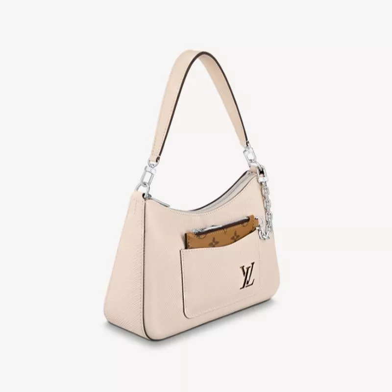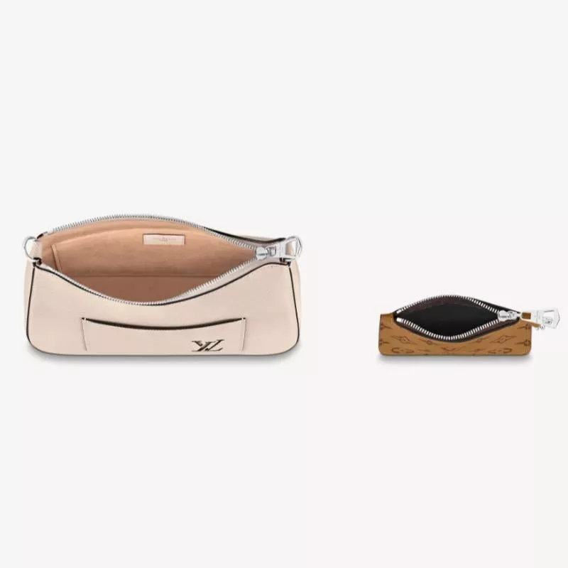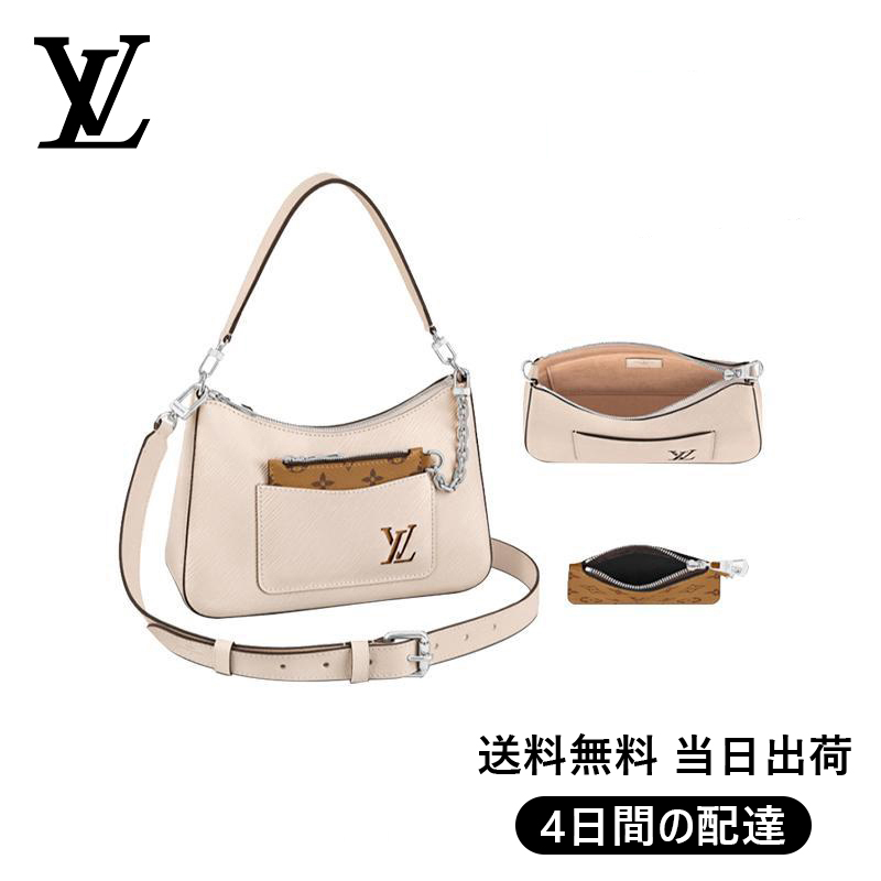 - エピ・レザーで仕立てた「マレル」。バッグの外ポケットには、バッグ本体とチェーンで繋がった取外し可能なキャンバス素材のポーチも。また、取外し可能なトップハンドルで腕や肩に掛けたり手持ちしたりできるほか、長さ調節できるレザーストラップでクロスボディバッグとしてもお楽しみいただけます。